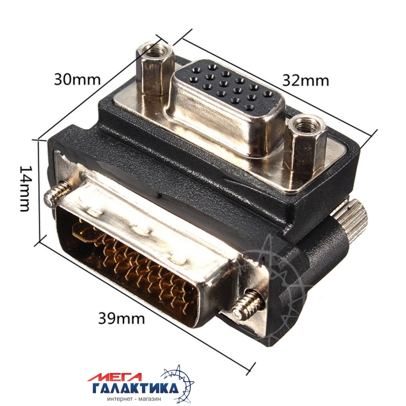 Переходник Megag VGA M (папа) - VGA F (мама) (15 пин) (мама-папа) Угловой 90° Black OEM