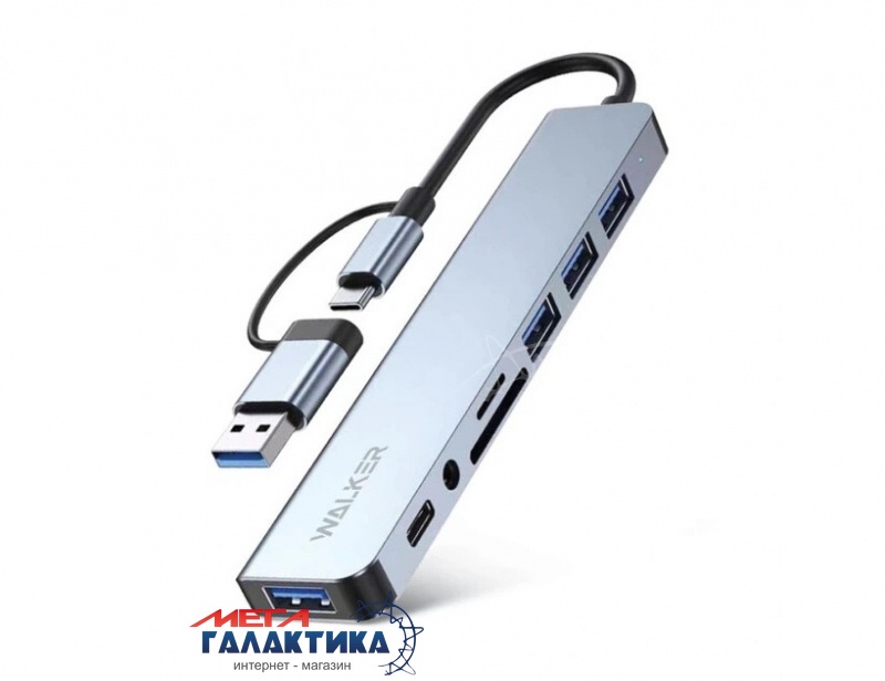| Краткое описание: | WALKER USB HUB WHUB-53 8 in 1 USB/Type-C Gray |