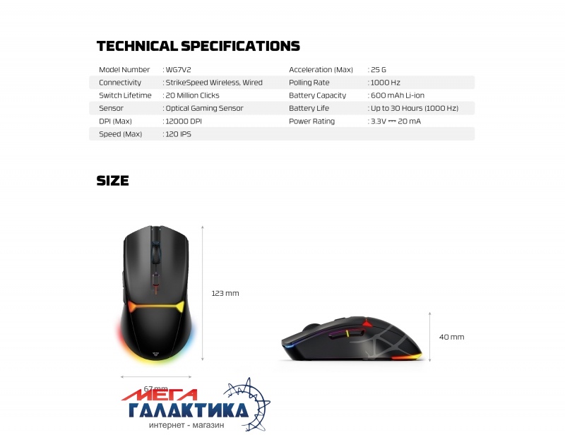 | Краткое описание: | FANTECH CRYPTO II Wireless Gaming Mouse 12000DPI 2.4Ghz RGB Black |