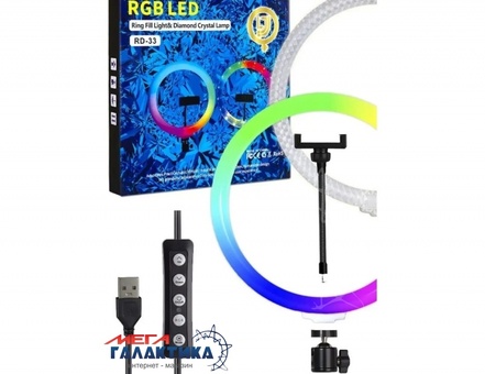Короткий опис: | Кільцева лампа RGB Crystal RD-33 33cm (Прозорий) + Штатив 2,1м |