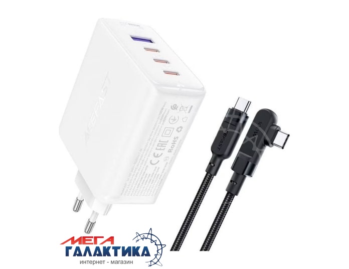 Короткий опис: МЗП ACEFAST A37 PD100W GaN (3USB-C+USB-A) charger set White