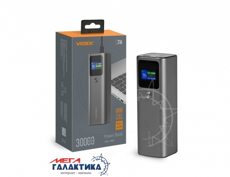 | Короткий опис: | 30000mAh VIDEX VPB-316 PD140W Display USB-C/USB-A Black |