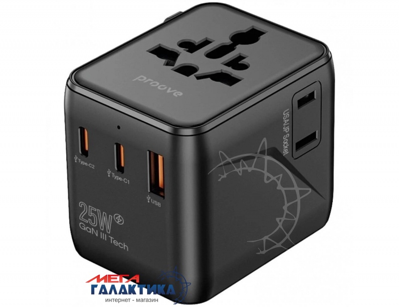 | Короткий опис: | МЗП Proove Trip universal adapter 25W 2* Type-C+USB-A Black |